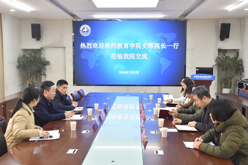 会议初始,刘传明院长首先对史晖院长一行的到来表达了诚挚的欢迎。随后,双方将交流焦点集中在“师范专业建设”领域,就师范班建设、师范生技能大赛、师范生基本功训练、教师资格证考试准备、高级别教研项目申报以及师范生培养方案修订等多个议题进行了深入细致的探讨。史晖院长在会上着重强调,应进一步强化师范生的基本功训练,特别是“三字一画”的技能提升。针对师范生实习面临的问题,史晖院长提出了新师范建设方案,建议深化与中小学的合作关系,建立长期稳定的互动与交流平台。针对师范生对教师行业现状了解不足的情况,刘传明院长则建议邀请具有丰富教学经验的中学地理教师来校开展讲座,以增进师范生对行业需求的认知与理解。