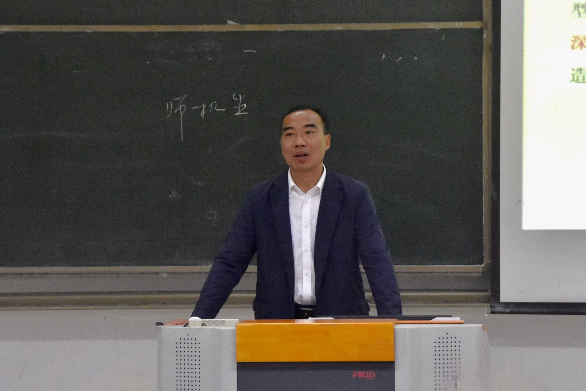 课堂伊始,毛广雄介绍了新质生产力驱动应用型人才培养革新的逻辑。他明确指出在高等教育办学走向的引导下,高校将培养复合型、应用型人才作为核心目标是为社会输送高质量人才的关键环节。随后,毛广雄紧密结合当今社会形势,从科技竞争走向、中国科技现状、推动科技进步角度,与同学们探讨新时代科技创新问题。面对世界科技竞争日趋激烈的现状,他着重强调,在科技创新朝着更广、更深、更快、更精方向迈进的当下,广大师范生需妥善把握“师、机、生”间的关系,思考教育变革带来的影响,以更好适应快速变化的教育环境。谈及我国科技机遇挑战共存的态势,毛广雄指出,科技创新取得成就的同时也面临许多问题,进入新时代,要加速强化科技创新的高水平供给能力。在加快科技自立自强步伐方面,他从技术、战略、制度、生态、人才五个方面具体分析,指明青年人要大力弘扬科学家精神,坚定信心砥砺奋进,勇攀科技高峰。
