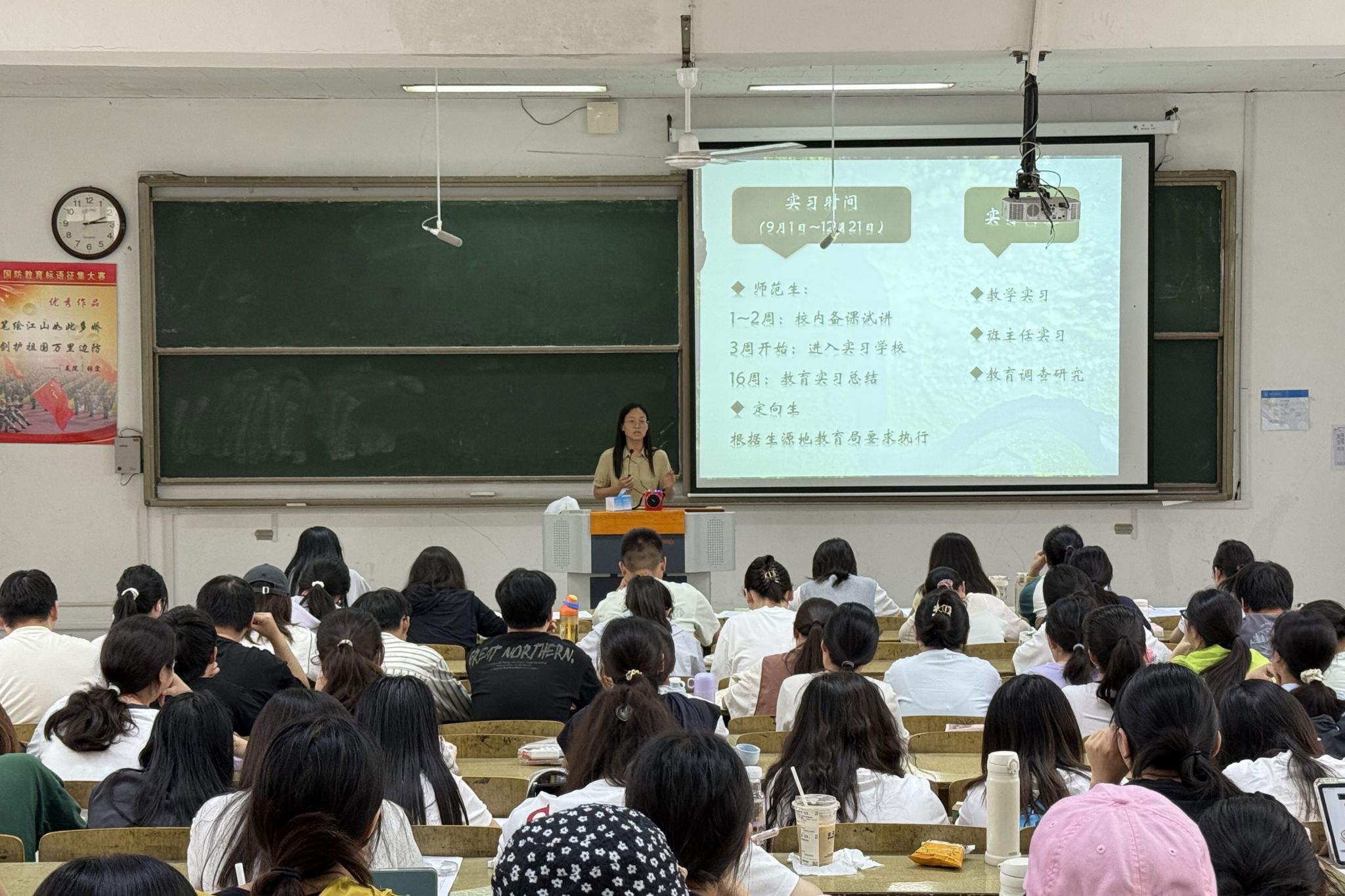 为确保2025年教育实习工作顺利开展,6月21日,今年会网站于崇文楼阶104教室召开2025年教育实习动员大会。会议由院地理科学系副主任杨雅雪主持,副院长王怀军、申大魁教授和全体2022级师范生参会。