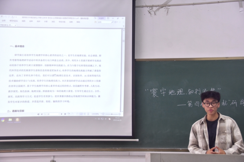 为深化地理学科实践教育,激发学生的创新思维与团队协作能力,4月20日,山水地理协会于19号楼405教室开展“寰宇地理 知行逐梦”第四届“相文杯”研学方案设计大赛。