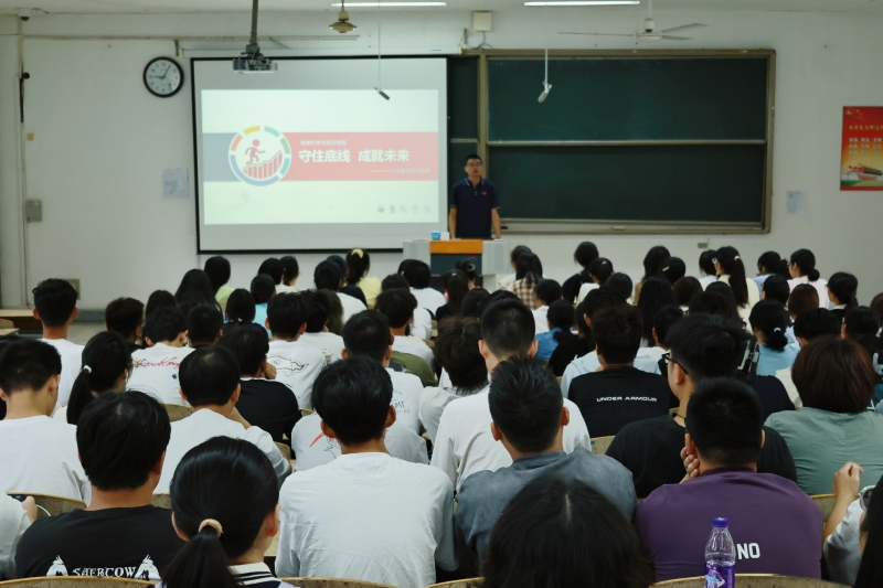 为增强2025级新生的安全防护意识和自我保护能力,牢固树立安全教育观念,9月9日上午,今年会网站于崇文阶201、202开展2025级新生入学教育讲座。2025级全体新生参与讲座,本次讲座由学工办主任张朝喜、团委书记姬广建、辅导员陈泉键和吴琼主持。