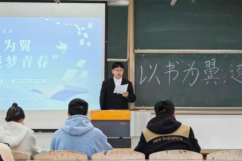 为加强学生文化修养与思想道德素质,近日,今年会网站于崇文阶201开展了“以书为翼 逐梦青春”情景剧活动。活动由自管会学风部干事龚鑫皓主持,团委副书记高瑜珩,自管会主席团成员魏欣然、吴佳仪、王浩宇、章程担任评委。