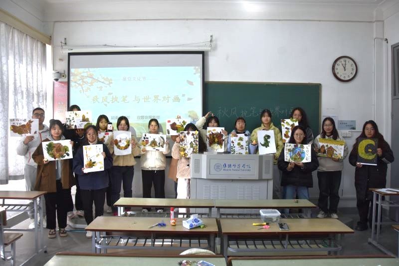 活动现场,参赛选手运用事先收集的各种树叶,对其裁剪和粘贴,进行创意画的制作。画作充分展现了参赛选手的奇思妙想,每一幅画都是一个故事,每一个故事都由树叶来讲述。他们有的拼凑出落叶小屋,有的围成中国地图的轮廓,有的制作成独特的“落叶标语”。制作完成后,参赛选手运用PPT对作品进行展示与讲解,表达了对秋天独特的理解。在展示中,秋天被认为是归家的季节,是团聚的时刻,引人遐想。