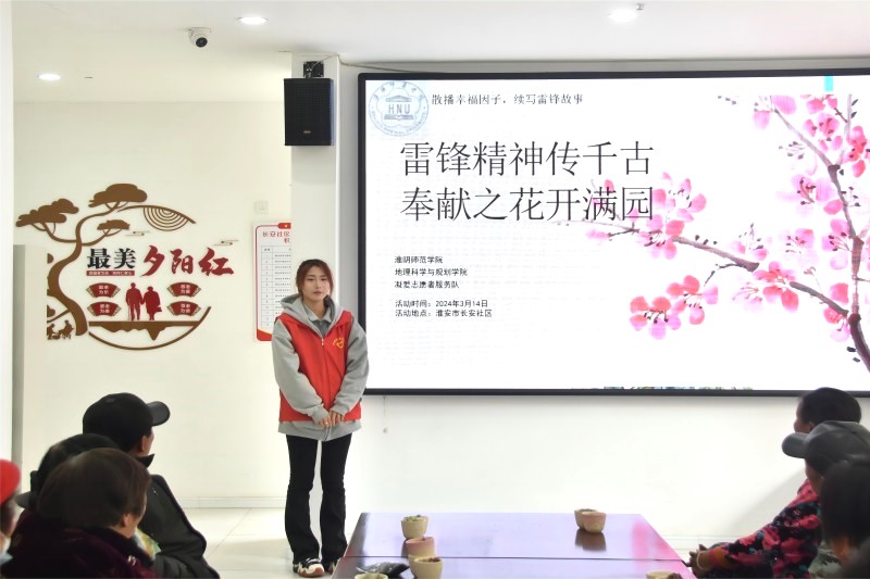 为弘扬奉献、友爱、互助、进步的志愿精神,3月14日下午,淮阴师范学院凝爱志愿者服务队于淮安市长江路街道长安社区开展了“雷锋精神传千古 奉献之花开满园”国际幸福日主题志愿服务活动。