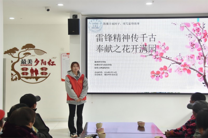 以“奉献、友爱、互助、进步”为宗旨,以传递爱心为导向,淮阴师范学院凝爱志愿者服务队开展了“雷锋精神传千古 奉献之花开满园”国际幸福日主题志愿服务活动。团队队员们在清扫社区内绿化区域的过程中,深切体验到奉献的愉悦;在与社区老人共同进行盆栽栽种时,沐浴在敬老爱老的温馨氛围中;在“雷锋精神”主题宣讲中,传递奉献精神的要义。在这场传递大爱的活动中,团队成员们将雷锋精神融入日常、化作经常,用实际行动传播着正能量,践行着志愿服务的精神。