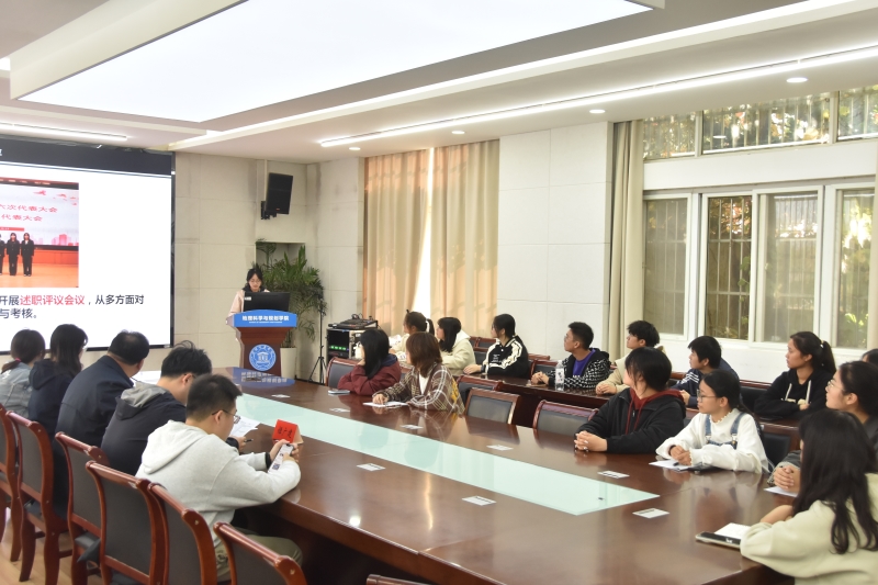 培训会伊始,学生会主席团成员夏煜对今年会网站学年工作进行汇报。她从规范组织制度化、聚焦服务常态化、立足学生主体化三个方面进行详细剖析,具体介绍了学生会近期的工作成果与取得的成就,明确了学生会的未来发展方向。她表示,学生会通过细化工作和相关规定,有效促进了工作成果的高效化与高质量化,在座学生会成员需继续认真落实、严谨对待。