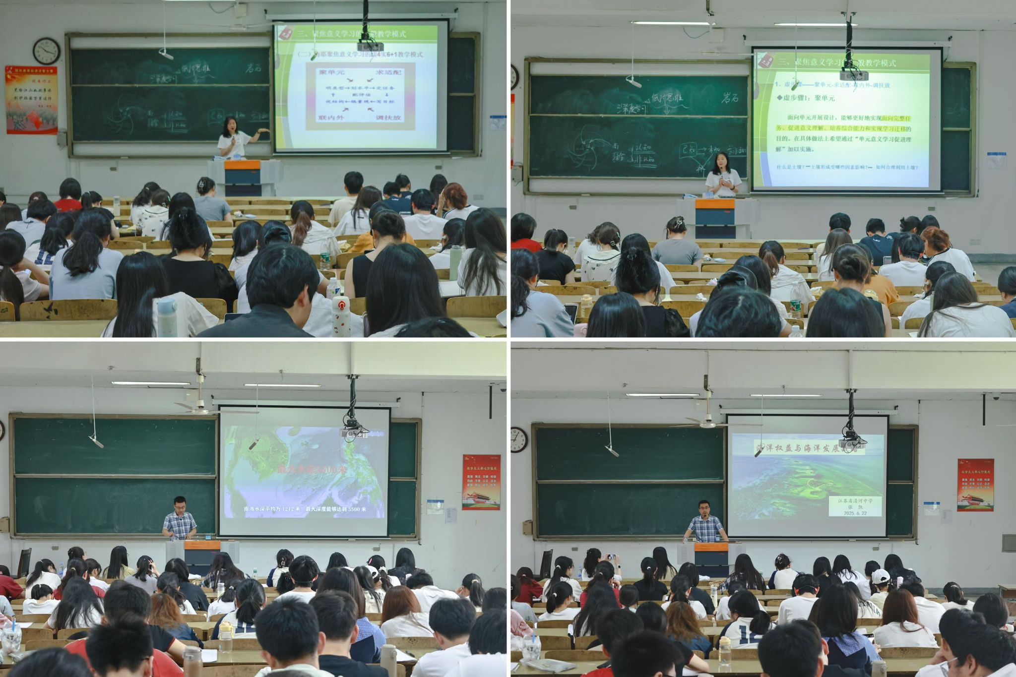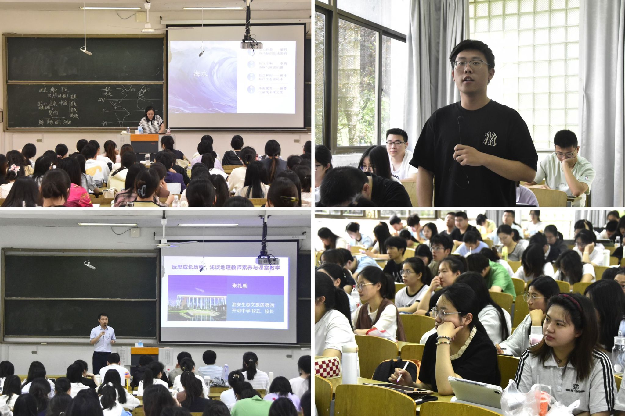 地理科学(师范)与地理科学(乡村教师)专业聚焦师范生教学能力和职业素养的全面提升。2024级学生开展硬笔、毛笔和粉笔字专项训练,进行规范书写考核,夯实语言文字基础;2023级学生系统参与教学目标与教学过程实训,学习课件制作与课堂组织方法;2022级学生围绕“明师学堂”系列讲座,聆听名师报告、观摩示范教学,并完成模拟授课展示,强化教学表达能力和教育创新素质,构建面向中学教育岗位的综合教学能力。