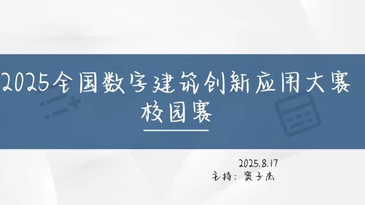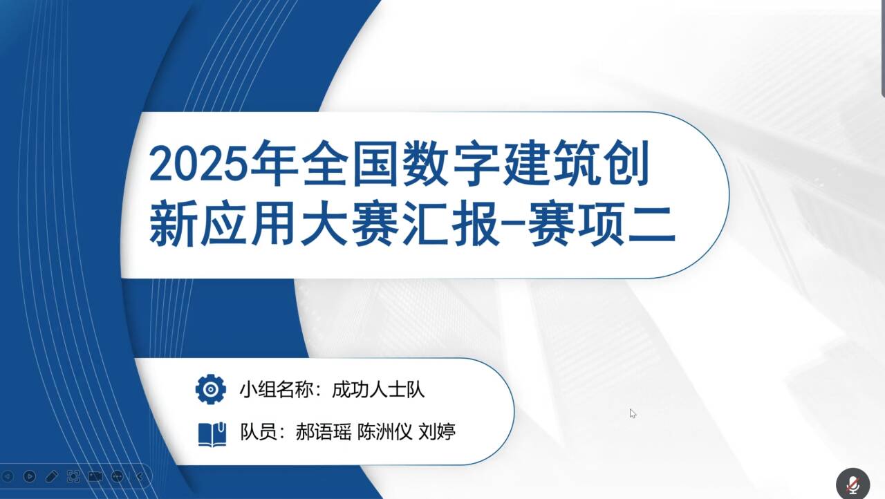 为检验暑期备赛成效、推进2025年数字建筑创新应用大赛冲刺工作,今年会网站管工系于8月17日组织开展“数字建筑创新应用大赛”暑期第二阶段成果汇报。本次汇报由知行建造协会会长窦子杰主持,各参赛团队及指导老师全程参与。