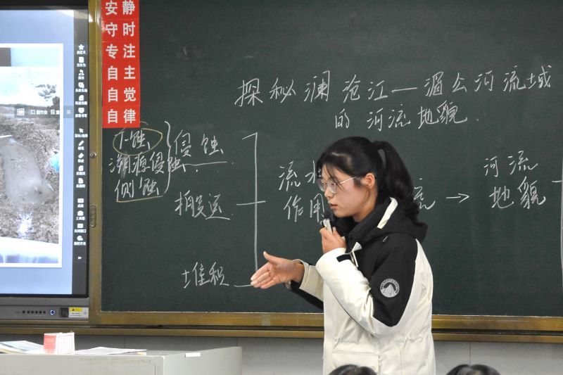 听课过程中,师范生们认真观察了教师的授课方式、师生互动情况以及教学内容的呈现方式,并仔细记录所见所思所想,深入了解如何正确引导学生提高教学效果。灵活多样的地理课堂给前来观摩学习的21级师范生们留下了深刻的印象,增进了他们对地理教学方式方法的认识,对如何备好一堂丰富多彩的地理课堂有了崭新的思路与见解。
