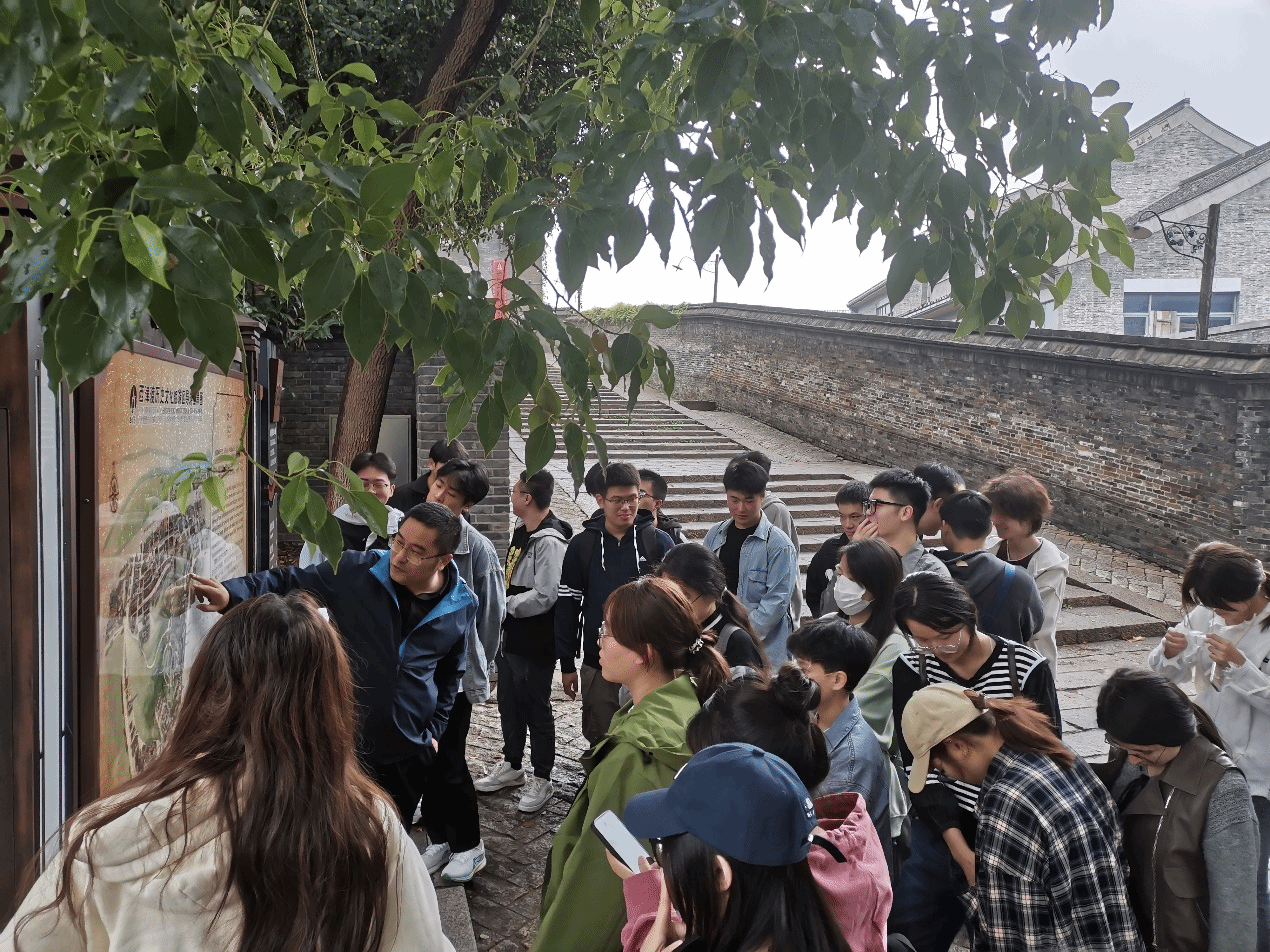 见习第三站为淮安市,淮安是大运河连接淮河、长江、黄河的关键节点。淮安运河见习主线“清口水利枢纽—里运河文化长廊—淮安运河博物馆—古末口遗址—河下古镇”。沿里运河而行,赏运河风景,在刘传明院长的讲解下,我们对运河文化有了更深刻的认识。步入清江浦记忆馆,我们观看了淮安城发展脉络。馆内设有“城—街—宅”三个板块,生动地再现了昔日“南船北马,九省通衢”清江浦的繁华景象,进一步彰显了淮安作为“运河之都”的深厚文化底蕴。走进古末口博物馆中,我们了解了古末口的历史,特别是南宋水利工程遗址,揭示了宋元时期的水工技术。走入河下古镇,我们仿佛置身于明清时期,古镇的经济繁荣、文化昌盛,商旅文客络绎不绝。乡村振兴见习主线“古庄牛村—后左村—龟山村—蒋坝古镇—马头古镇”。踏入古庄牛、后左村,让我们知晓了淮河入海水道二期工程在淮河流域防洪工程体系中的作用,同时也为沿线村庄建设提供了新的机遇和挑战。进入龟山村,我们厘清了其三面临水、一面接陆独特的山水格局,“龟山遗址”“淮渎庙”“御码头”、“圣旨碑”等丰富的文化古迹遗存,见证了龟山村昔日的辉煌与沧桑。走进拥有丰富的自然资源和优美的生态环境的蒋坝镇,我们观洪泽湖石工堤,走风情格调民宿,体验渔网、虾具等编制,探讨旅游绅士化背景下旅游社区的发展路径。