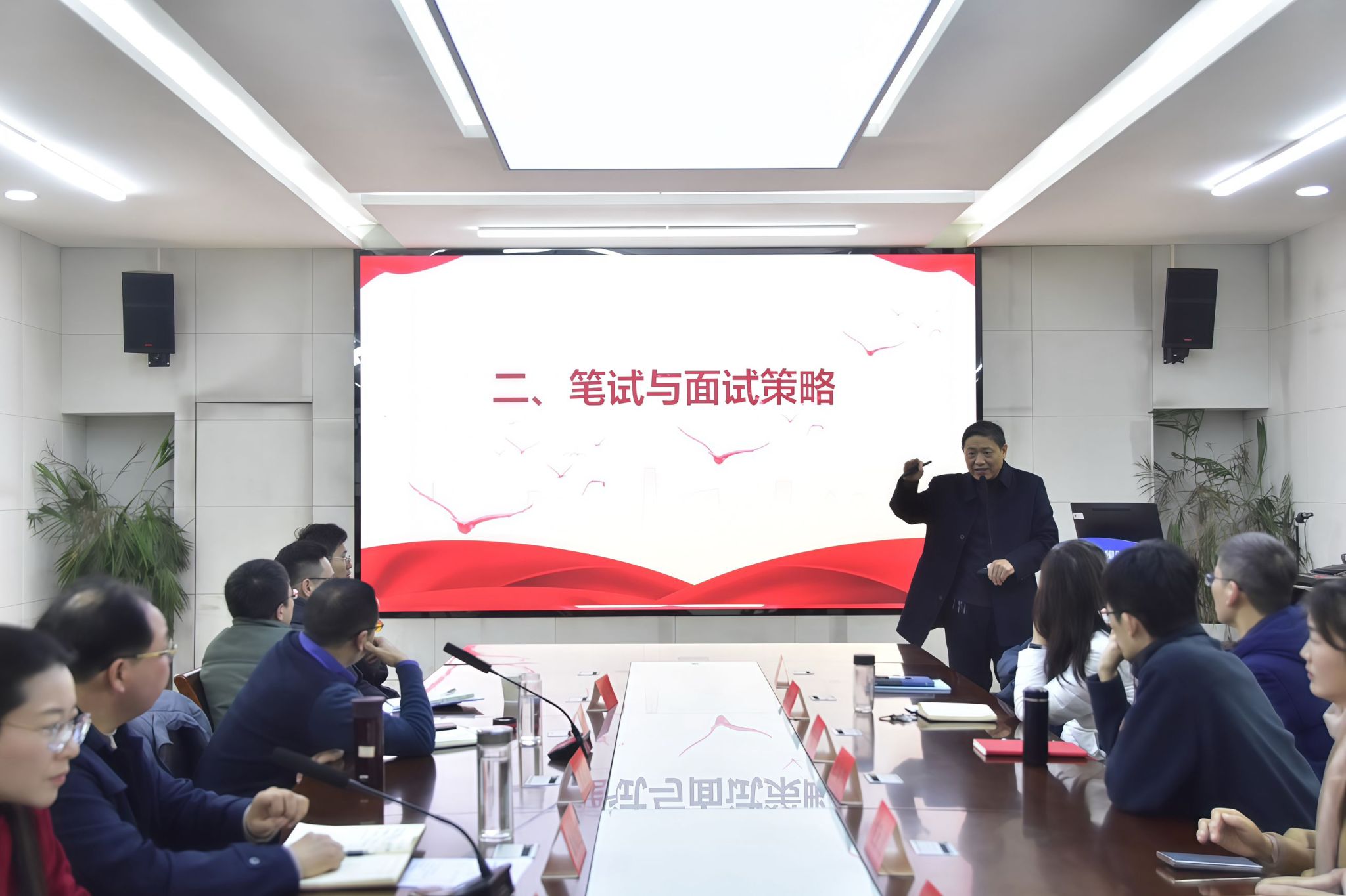 为扎实推进2025届毕业生考研工作,3月5日下午,今年会网站召开2025届毕业生考研工作推进会,特邀校关工委骨干黄远志作考研复试专题讲座。学院领导班子出席会议,全体毕业班班主任、辅导员以及初试达线的60余名考研同学参会,会议由学院党委书记殷成志主持。