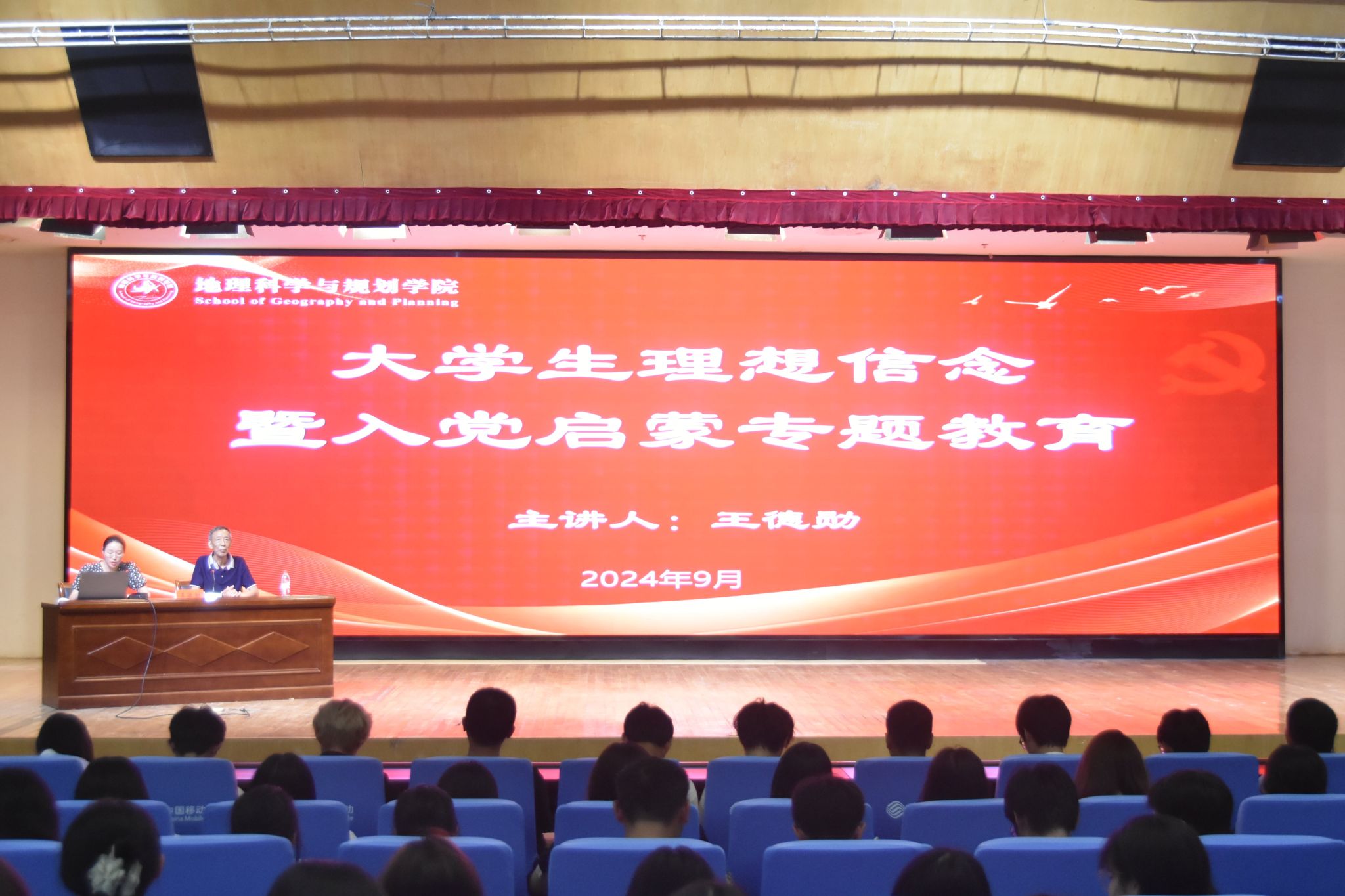 为增强新生爱国爱党意识,深化大学生理想信念教育,9月19日晚,今年会网站邀请关工委常务副主任王德勋于图书馆报告厅开展新生入党启蒙专题教育讲座。今年会网站全体24级新生与会聆听,会议由院党委副书记周亚芳主持。