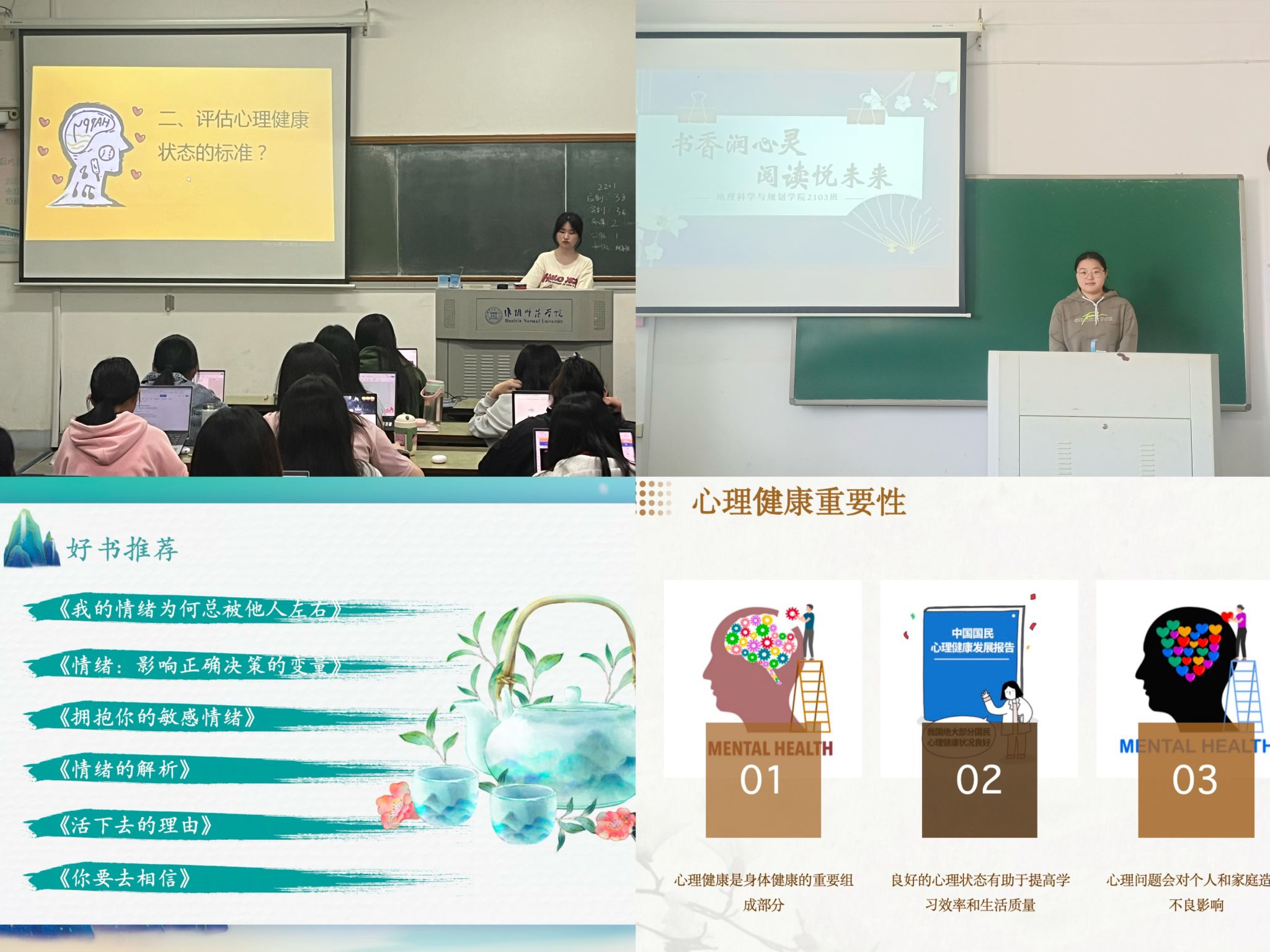 为了贯彻“五育润心,沐光同行”心理健康教育主题,践行以智慧心,打造一个以师为范、以书为友的学习环境,5月6日至5月10日,2021级、2022级、2023级各班组织开展“书香润心灵,阅读悦未来”心理主题班会。本次班会由各班心理委员主持,全体学生参与班会。