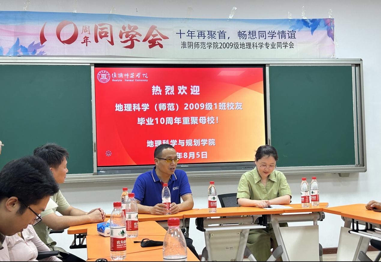 8月5日下午,地理科学(师范)专业2009级1班校友毕业10年后重聚母校。今年会网站热烈欢迎校友的到来,并举行了毕业十周年师生座谈会。院长刘传明、班主任曹玉华应邀参加活动。