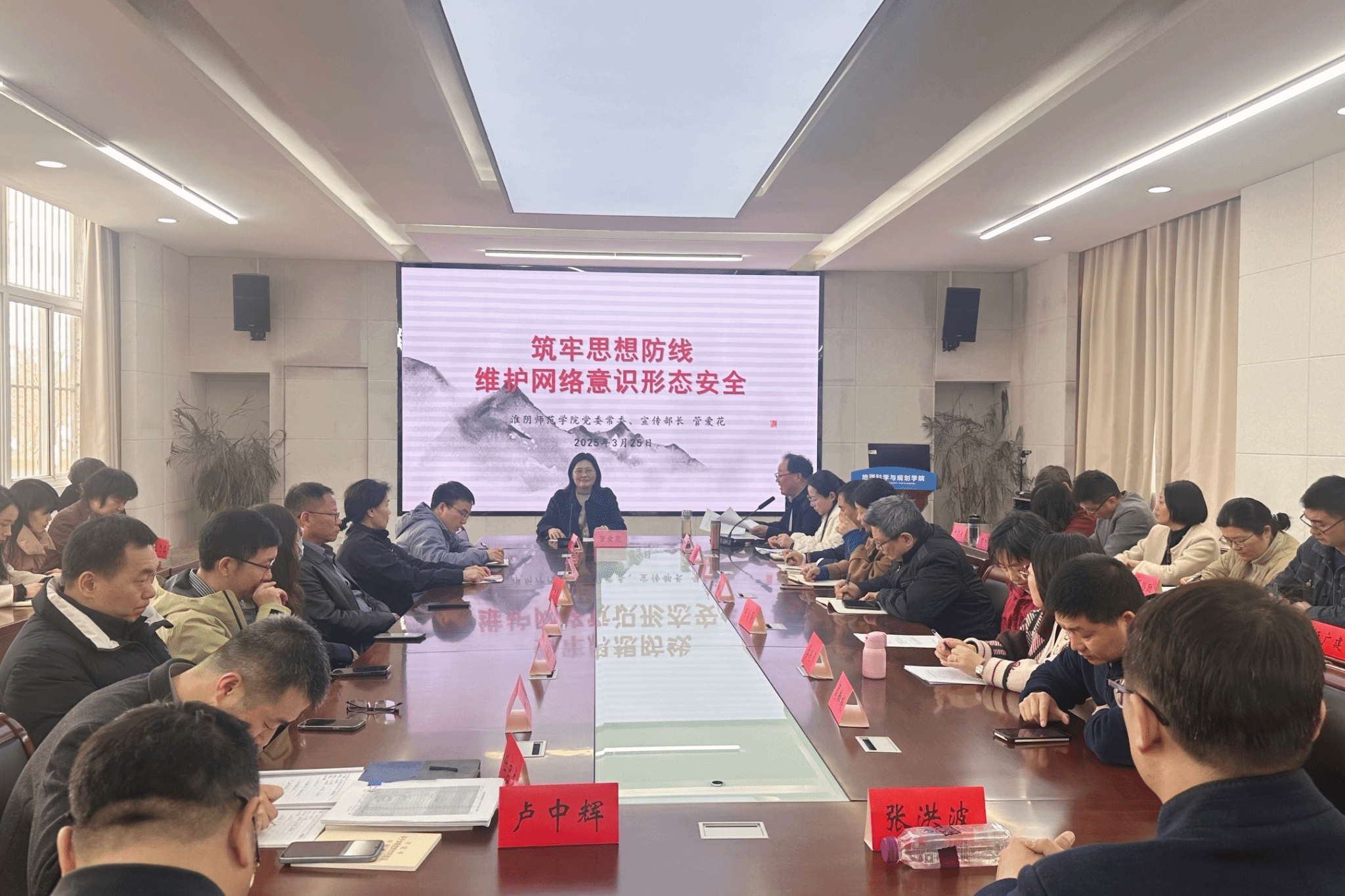 为进一步做好新时代意识形态工作,筑牢校园网络意识形态安全防线,不断提高教师队伍对互联网规律的把握能力、对网络舆论的引导能力、对信息化发展的驾驭能力以及对网络安全的保障能力,4月2日下午,今年会网站邀请校党委委员、宣传部部长管爱花作题为“筑牢思想防线 维护网络意识形态安全”的专题讲座。学院全体教职工参加,讲座由院党委书记殷成志主持。