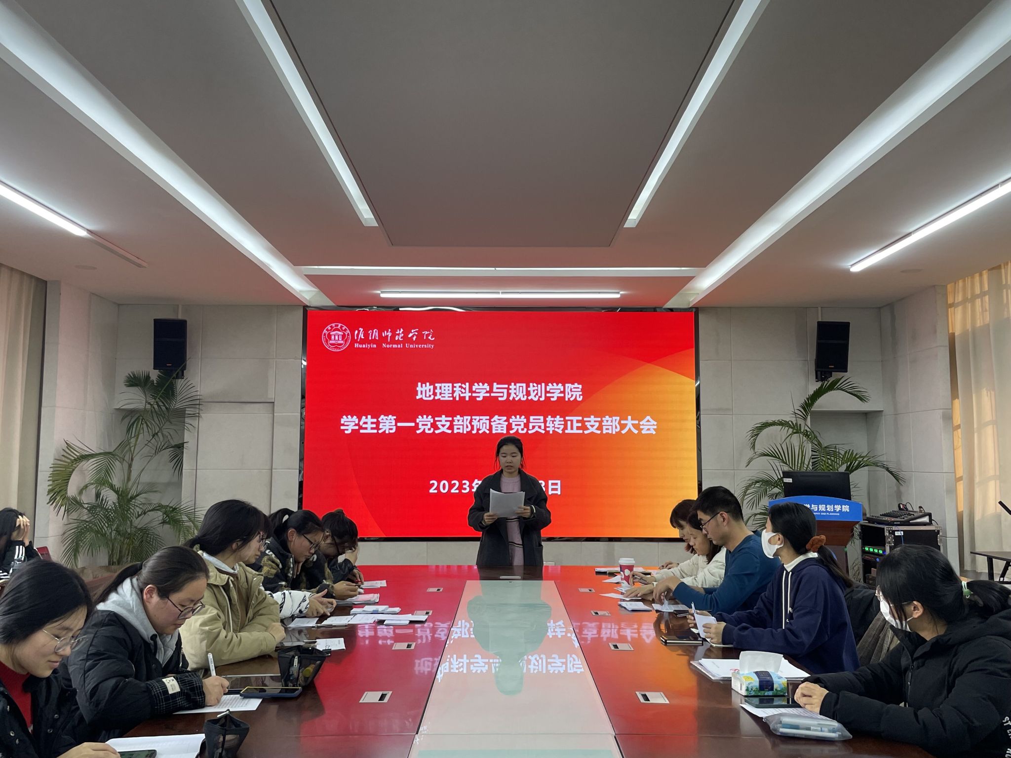 11月28日,今年会网站学生第一党支部召开党员大会,讨论朱祝莹等七位预备党员转正事宜。大会应到人数34人,实到34人,其中正式党员9人,符合人数要求。会议由支部书记吴琼主持。