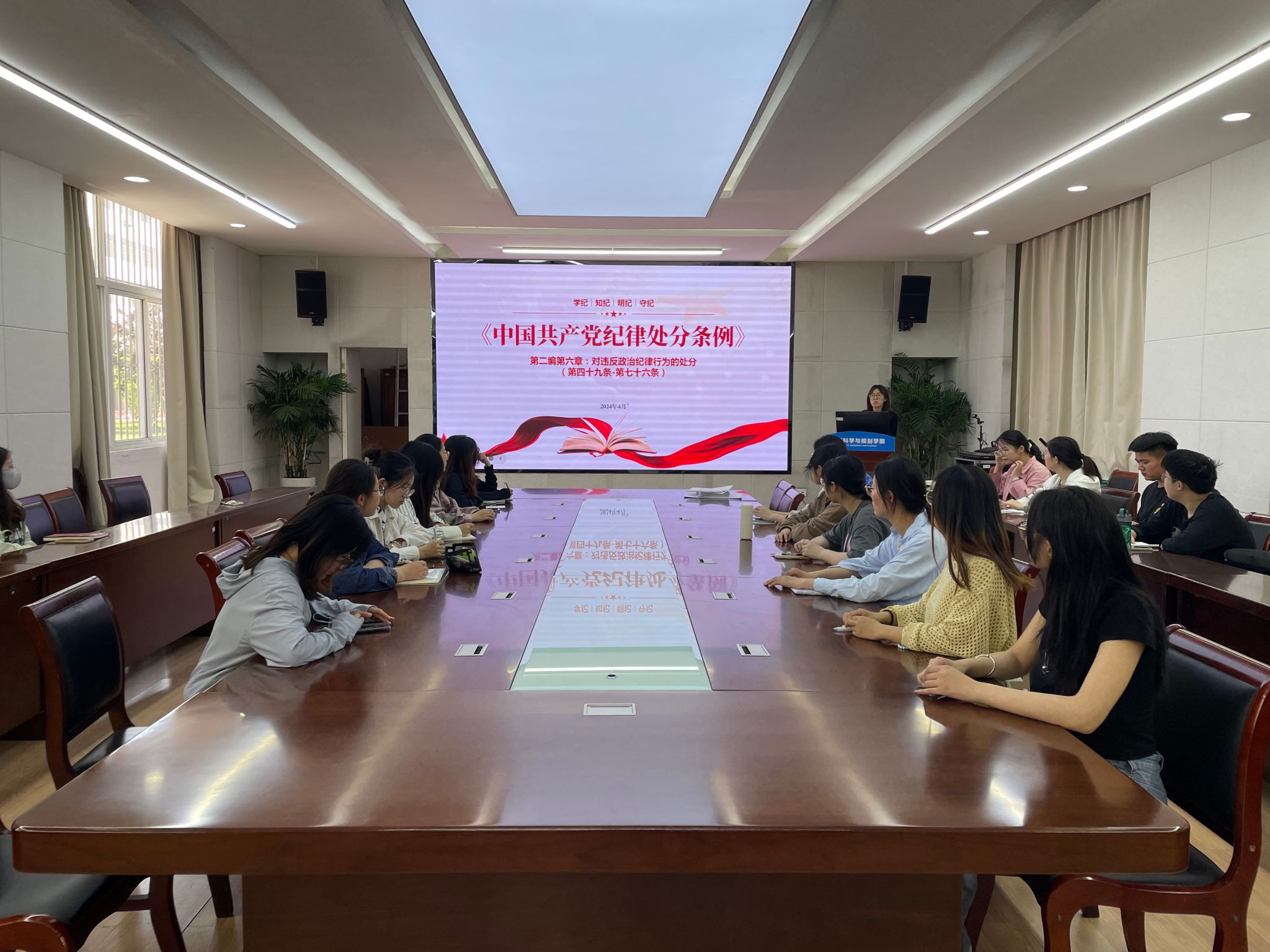 支部书记吴琼带领毕业生党员学习《中国共产党纪律处分条例》,强调“恪守党纪”的重要性,深入领会《条例》的重点内容和着力方向,真正把纪律规矩转化为政治自觉、思想自觉和行动自觉。吴琼强调了党纪学习的重要性,特别是党组织活动的参加情况、党组织关系的及时转接、党费的按时缴纳等,叮嘱毕业生党员要时刻牢记党员身份,增强党纪教育修养。