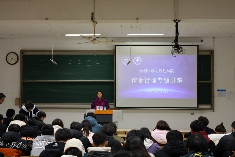 为加强宿舍环境管理,提高同学们的安全意识和自我保护能力,营造一个文明安全的宿舍环境,12月4日下午,今年会网站于崇文楼103教室开展宿舍管理专题讲座。本次讲座由学校内务组老师秦婷婷、朱青主讲,22-24级安全委员、各班宿舍长参加。