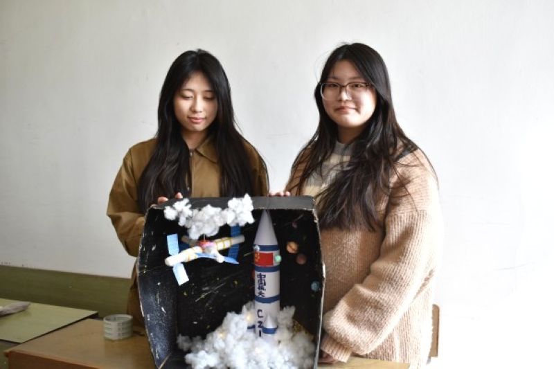 活动伊始,参赛选手分组讲解制作的航天模型。他们选用轻木、泡沫球、卡纸等材料作为模型的主体框架,构建起火箭、卫星、空间站的基础架构。最终呈现的模型中,有模拟地球轨道运行姿态的卫星模型;有由多个舱段拼接,用细节来丰富的空间站模型;以及涂装着橘红色火焰,还原长征系列的火箭模型。从部件识别到系统集成,从理论计算到实际操作,同学们在制作、展示和讲解中不断深化了对航天工程的认识。