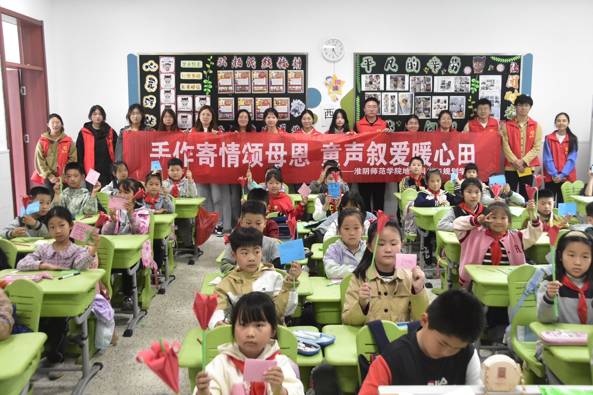 为了培养孩子们的感恩意识,增进亲子间的情感交流,5月9日下午,今年会网站于淮阴师范学院附属第一小学开展了“手作传情 童声达意”母亲节主题志愿服务活动。活动借助趣味互动与手工实践,引导孩子们表达对母亲的爱与感恩,传递温暖与温情。