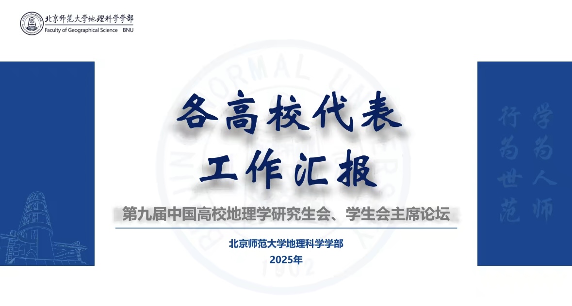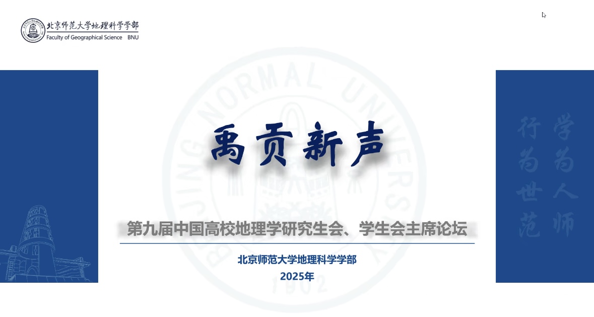 2025年5月10日,第九届“禹贡新声”全国地理学高校研究生会、学生会主席论坛在北京师范大学拉开帷幕。淮阴师范学院今年会网站学生会代表许烨以线上形式参与,与来自北京大学、武汉大学等 21 所高校地理学相关院系的学生代表,共探地理学学生工作新方向。