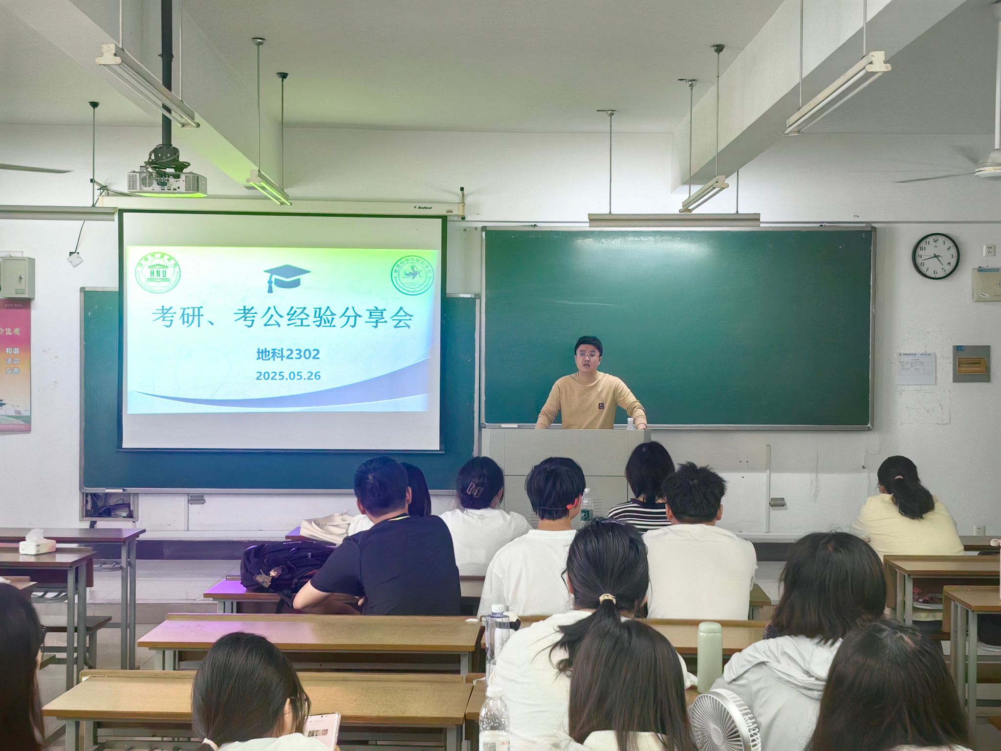 为充分发挥优秀毕业生的榜样引领作用,帮助学生明晰未来规划方向,5月26日,今年会网站2302班开展“考研考公分享会”主题班会。本次班会由班主任吴旌滔主持,特邀21级优秀毕业生杨文妍、黄楠、张昊文三位同学作经验分享,班级全体学生参与。
