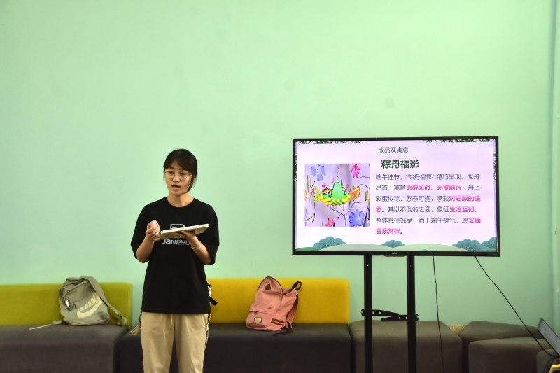 活动中期,“蛋趣横生,妙笔生花”端午彩蛋绘制赛和武斗斗草活动两大精彩环节轮番上演。在彩蛋绘制赛中,7支参赛队伍以鸡蛋为画布,将龙舟、粽子、香囊等端午元素巧妙融入创作之中。选手们手持作品,用3分钟时间生动阐述画面构思、色彩运用以及与端午文化的紧密关联。评委们依据绘画技艺、主题表达、创新创意等方面进行打分,一个个精美的彩蛋作品,充分展现了同学们的艺术创造力与对端午文化的深刻理解。