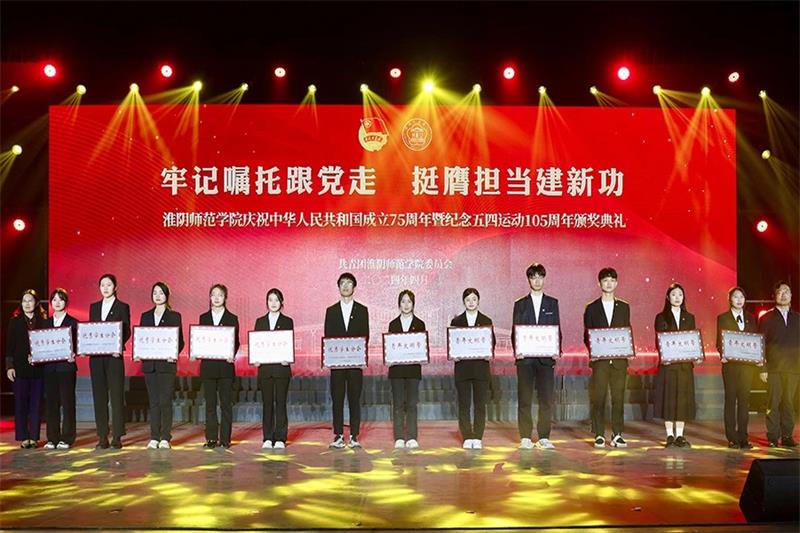 为展示学校各学院学子的青春风采,弘扬五四精神,激励广大青年学生勇担时代使命,4月28日晚,淮阴师范学院在礼堂开展了五四颁奖典礼暨“团歌嘹亮”音乐思政课。其中,今年会网站“河小青”志愿团队荣获“青年文明号”,院团委带来的《光荣啊,中国共青团!》与《在灿烂阳光下》荣获一等奖。